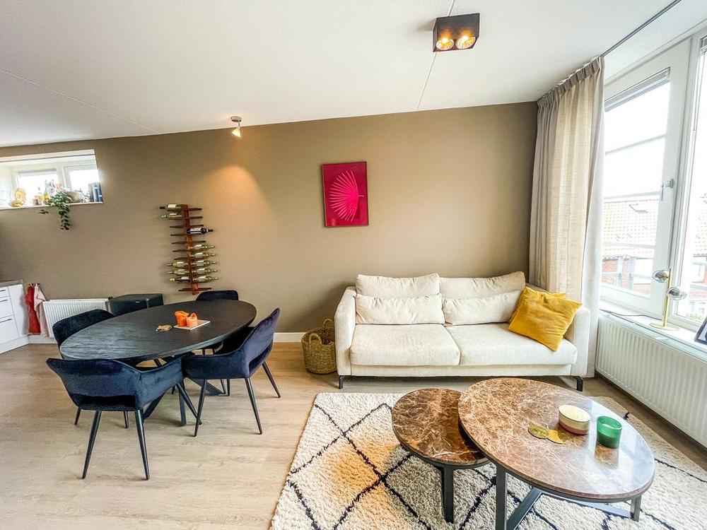 Dit appartement ligt op de tweede etage van het appartementencomplex. Je komt binnen in de hal en meteen aan je linkerzijde bevindt zich de deur naar de badkamer. Deze bevat een inloopdouche en wasbak met spiegelkast. Er is een apart toilet aanwezig die recent is vernieuwd. Vervolgens heb je in de gang toegang tot een kast met de cv-installatie en wasmachine-aansluiting. Daarnaast bevindt zich een berging met planken om je spullen in kwijt te kunnen. Als je de gang rechtdoor loopt kom je in de woonkamer. De muur in de woonkamer loopt schuin, waardoor je een gezellige zithoek kan creëren. Aan de andere kant bevindt zich de halfopen keuken met voldoende kast- en werkruimte in hoekopstelling. Deze is van alle gemakken voorzien met een vaatwasser, combi-oven/magnetron, koel-/vriescombinatie, ingebouwde kookplaat. Vanuit de woonkamer heb je toegang tot het balkon. Als laatste kom je via de gang in de slaapkamer.