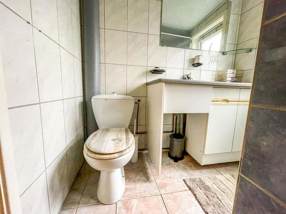 Aan de voorzijde van de woning bevindt zich de zithoek, waar de grote ramen zorgen voor veel lichtinval. Neem plaats op de bank, zet de houtkachel aan en kom helemaal tot rust in jouw nieuwe woning. Aan de achterkant van de woonkamer is de eethoek. De openslaande deuren in de eethoek geven toegang tot de achtertuin.