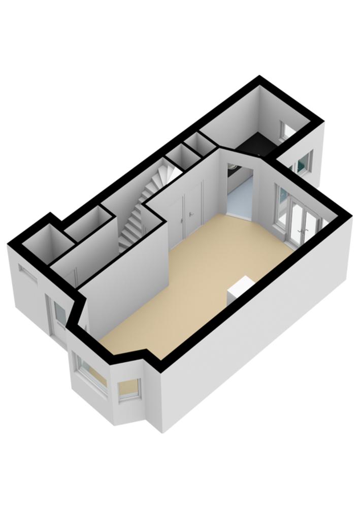 Achter de voordeur bevindt zich de entreehal met het toilet, de trap naar de eerste verdieping en de toegang tot de woonkamer.