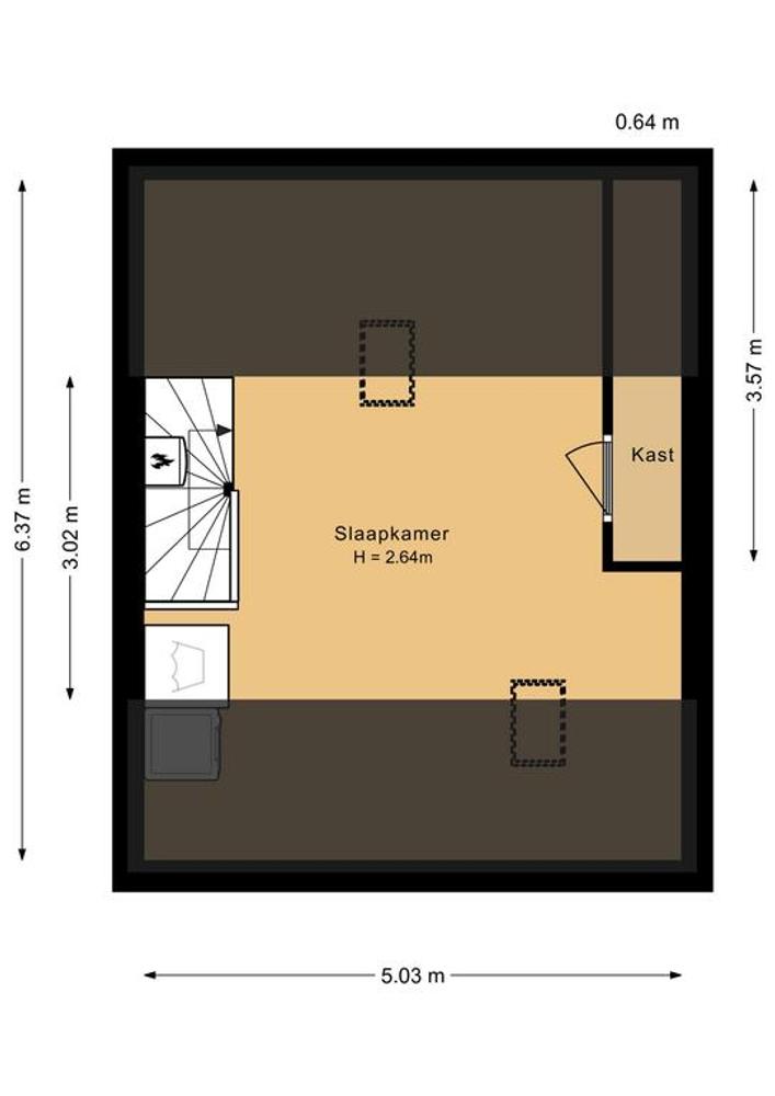 Tot slot kom je via de 2e trap op de zolder terecht. Hier heb je nog veel ruimte en mogelijkheden om een extra plek te creëren. Hier zou je zeker nog een washok en een extra slaapkamer kunnen maken.