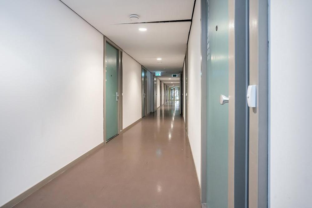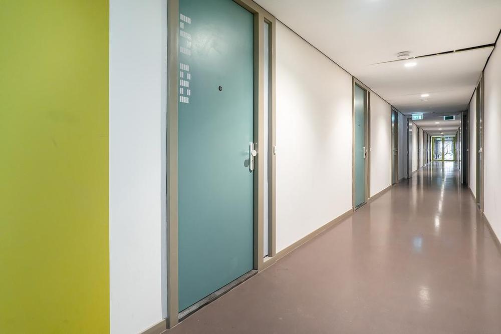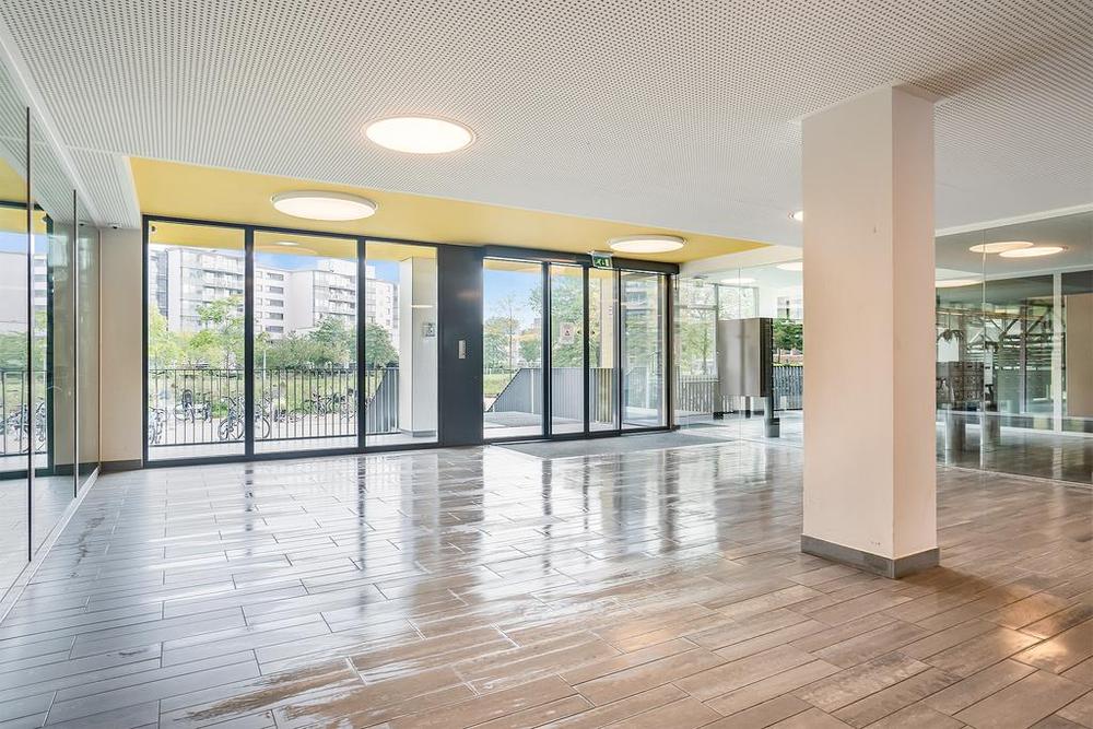 Common entrance with spacious neat hall, mailboxes, janitor and Miele laundry. Via the two elevators and the stairwell you can reach the second floor. The floor is only accessible to residents and the entrance and bicycle storage in the basement can be accessed via a drip system. The common areas are cleaned regularly!