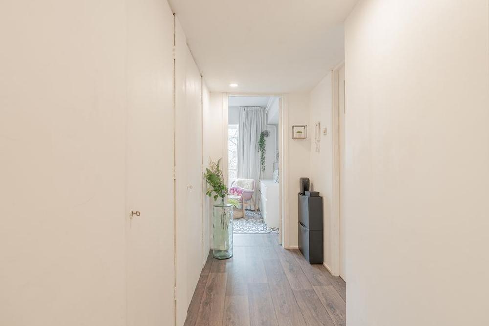 Adjacent to the living room is the kitchen. The kitchen has built-in appliances: a dishwasher, built-in oven and four-burner stove. In the kitchen is also the connection for the washing machine. One of the two balconies is also by the kitchen and overlooks the Sloterplas. Here is room for a bench or seat.