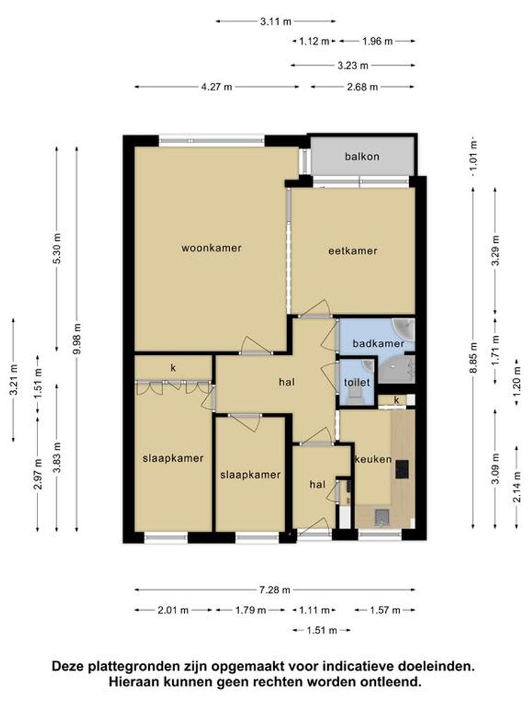 - Mogelijkheid om 3 slaapkamers te maken