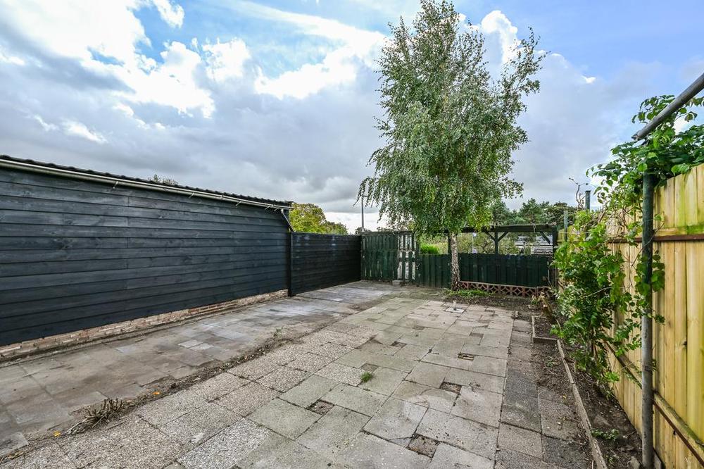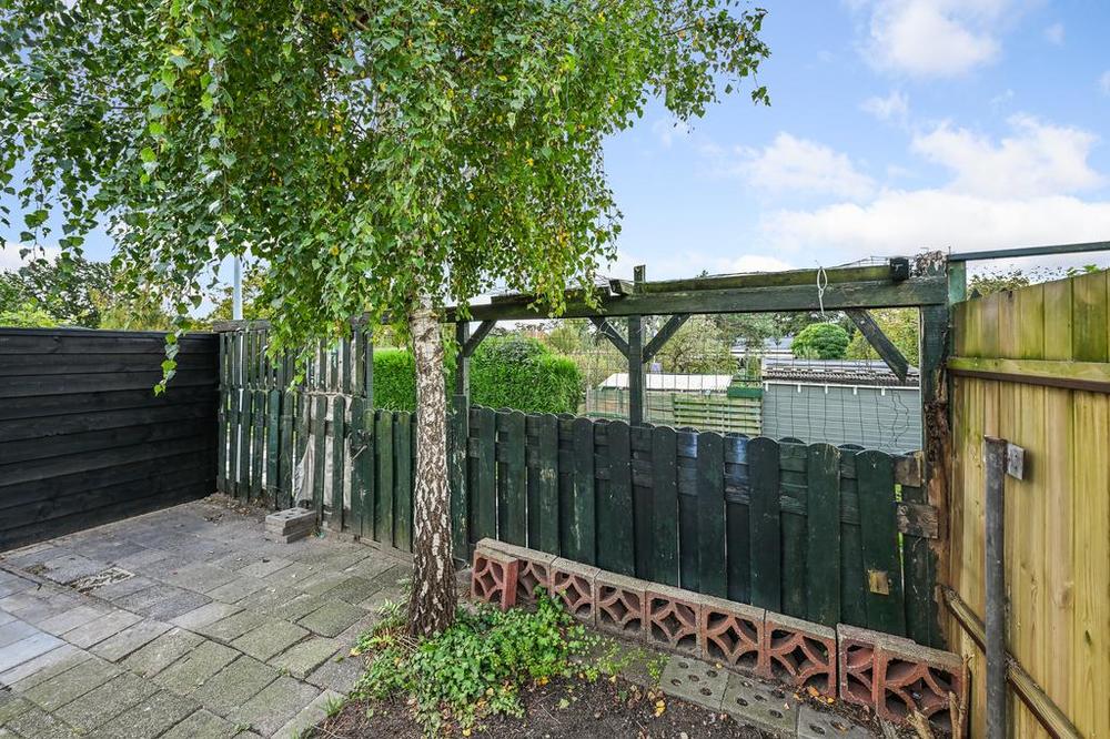 De keuken geeft toegang tot een royale, op het zuiden gelegen tuin van maar liefst 120 m², waar u in alle rust kunt genieten van de zon en het uitzicht. In de tuin bevindt zich een berging, ideaal voor het opbergen van gereedschap of fietsen. Ook de Cv-ketel (Intergas Kombi Kompakt HRE 24/18 uit 2013) is hier geplaatst.