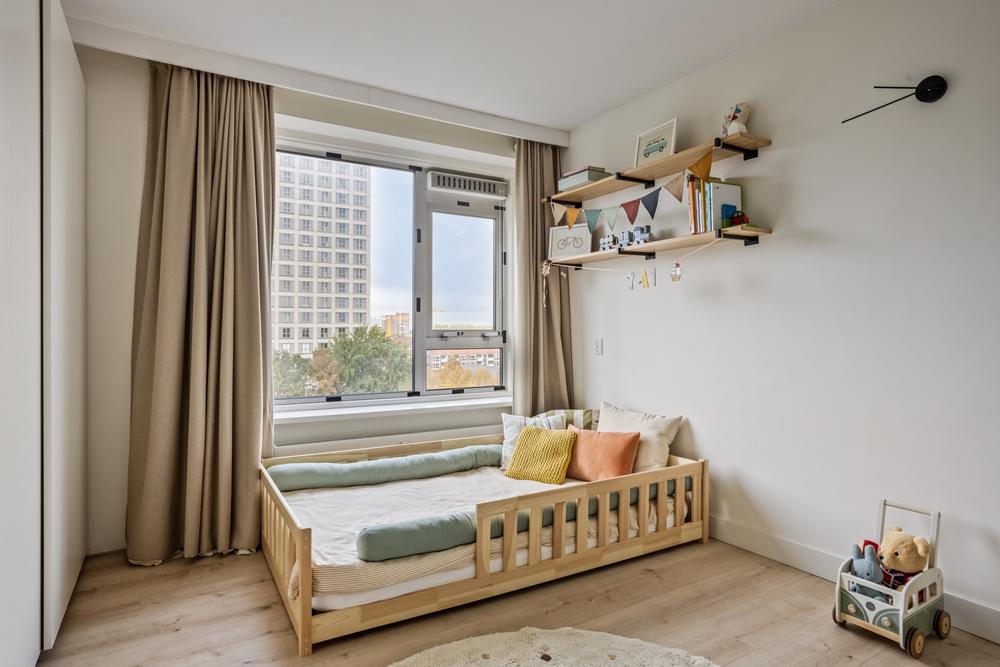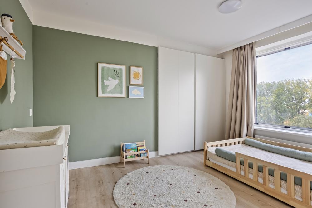 From your sunny south-facing balcony you can look straight into the Rembrandt Park, while inside everything is sleek, modern and ready to move in. Thanks to the smart layout, three spacious bedrooms (with an option for a fourth), a luxurious open kitchen and a cozy living area, this is the perfect home for families or home workers looking for peace, space and city energy.