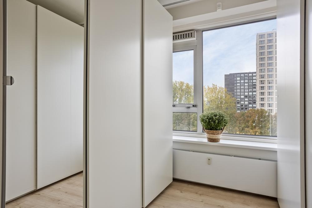 Welcome to Nachtwachtlaan 471, a spacious and bright 5-bedroom apartment on the eighth floor of no less than 124m2 in the middle of the green Rembrandpark. Completely renovated in 2019, this apartment has two external storage rooms and also has a private parking space in the garage below.