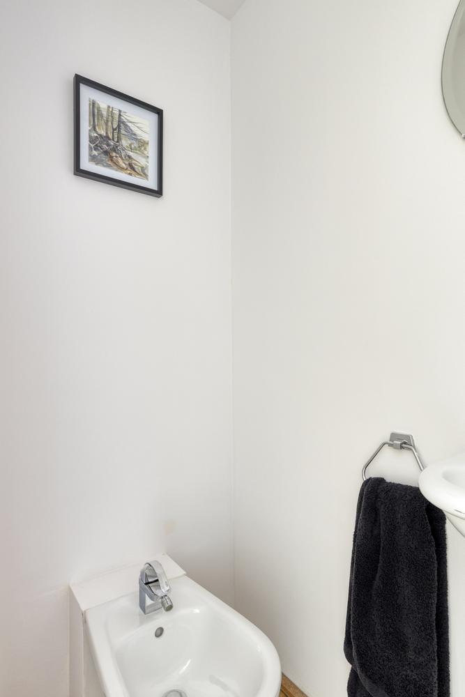 The bedroom features a wide bay window and is very spacious. There is enough room for a 2e bedroom or study to create. The bedroom overlooks the quiet street, has closets and even a modern gas fireplace. Also ideal as a work or study space.