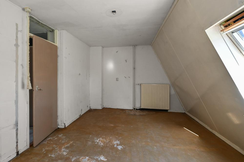 De tweede verdieping bestaat uit een royale open zolderruimte, bereikbaar via een vlizotrap. Hier bevindt zich de cv-installatie en er is meer dan genoeg bergruimte of potentie voor een extra kamer. Dankzij de breedte van het huis en het schuine dak is deze zolder een flexibele bonusruimte waar je alle kanten mee op kunt.