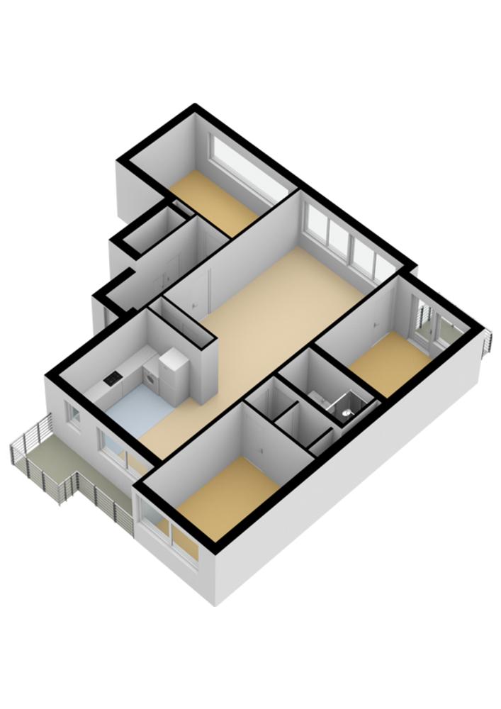 Je komt het appartement binnen via de deur aansluitend aan de galerij. Na de voordeur vind je links in de gang twee grote inbouwkasten. Als je de gang doorloopt, loop je tegen de 1e slaapkamer aan. Deze slaapkamer heeft een grote raampartij, dus beschikt over veel natuurlijk licht.