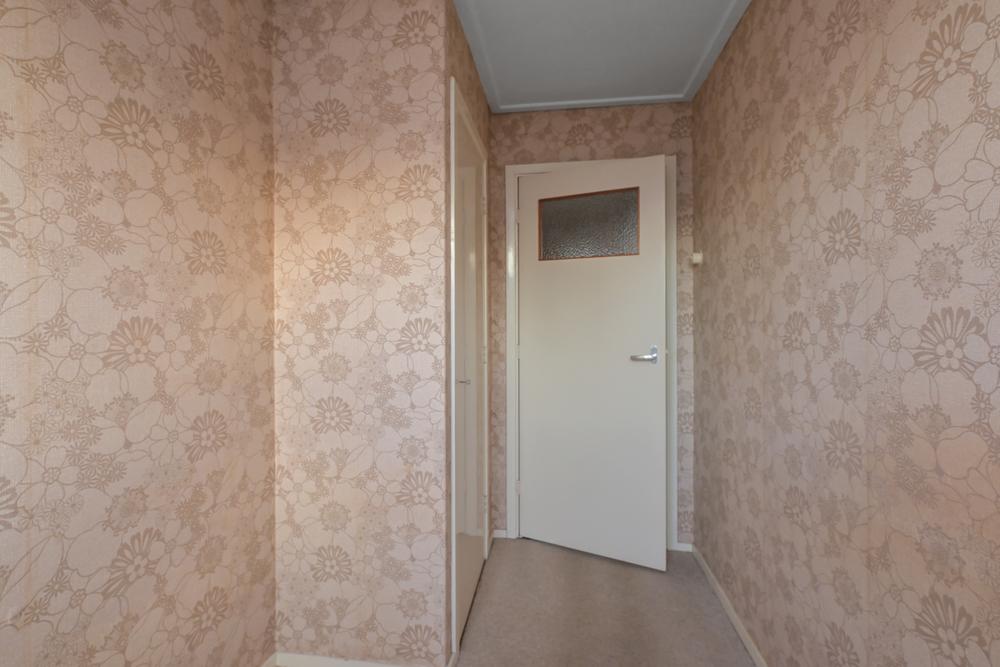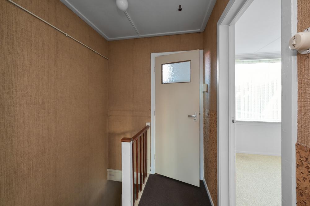 Bij binnenkomst komt u in de hal, die toegang biedt tot de trap naar boven, een handige trapkast, het toilet en alle leefruimtes. De woonkamer bevindt zich aan de linkerzijde van de woning en wordt dankzij de grote ramen aan de voor- en achterzijde prachtig verlicht door daglicht. Vanuit de hal bereikt u de dichte keuken, die weliswaar toe is aan modernisering, maar volop mogelijkheden biedt om uw ideale keuken te realiseren.