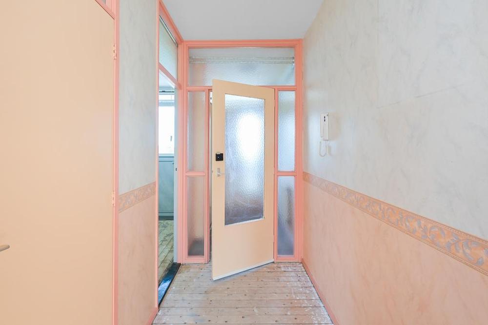 Bij binnenkomst in de flat word je verwelkomd door een nette, goed onderhouden entree. Vanaf hier ga je naar de vijfde verdieping, waar het appartement zich bevindt. Voor de sportievelingen is de trap een goede optie, maar er is ook een lift beschikbaar voor extra gemak.