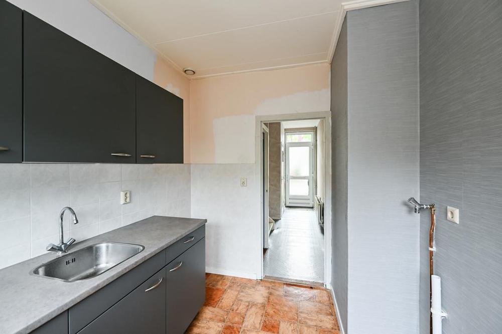 De keuken biedt toegang tot de royale achtertuin, gelegen op het noorden. Deze hoekwoning profiteert van een extra ruime tuin, ideaal voor liefhebbers van buitenleven, spelende kinderen, of het creëren van een groene oase.