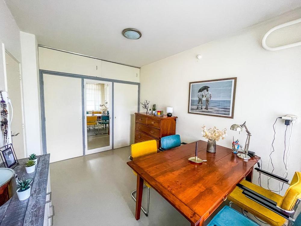 Aan het einde van de gang kom je in de woonkamer. De woonkamer bevat voldoende ruimte voor een zit- en eethoek. Bovendien is er een groot raam aanwezig, welke zorgt voor veel daglicht in de woonkamer. Het appartement beschikt over 2 ruime slaapkamers. Een slaapkamer is gelegen aan de zuidzijde van de woning en geeft toegang tot het balkon. De andere slaapkamer bevindt zich aan de andere kant van de gang, tegenover de keuken. De huidige bewoners hebben daar hun eethoek, maar is zeker ook geschikt als slaapkamer.