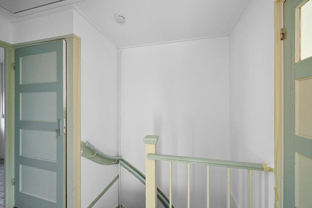 Op de eerste verdieping bevinden zich drie slaapkamers. Twee kamers zijn ruim opgezet, terwijl de derde kamer een praktische indeling heeft en ideaal is als werk- of kinderkamer. Daarnaast vindt u hier de badkamer, uitgerust met een douche, wastafel en aansluitingen voor de wasmachine.