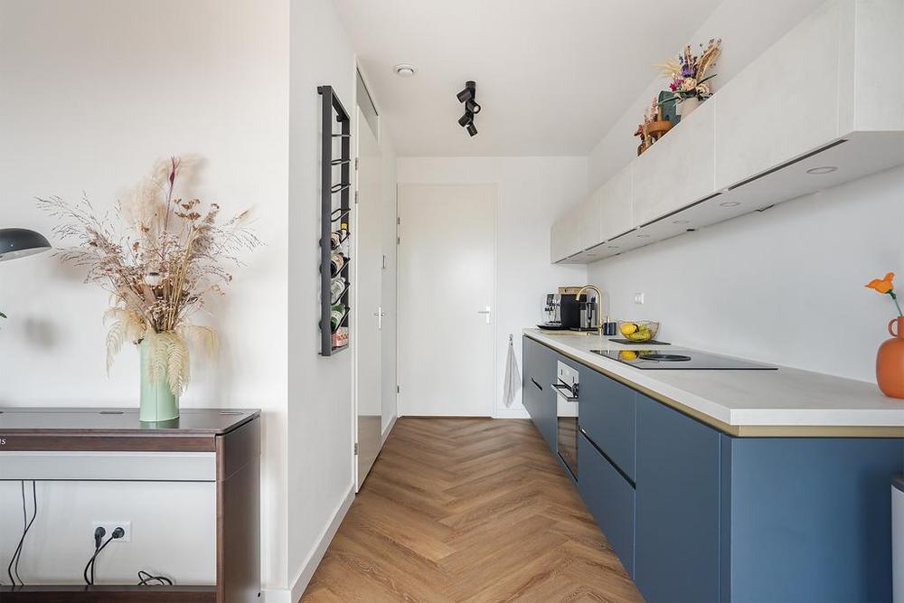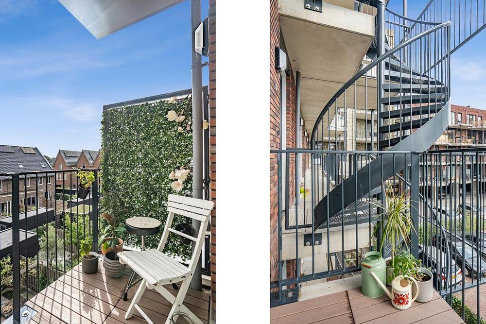 Verder is er een stijlvolle badkamer met inloopdouche en wastafel met meubel. Een apart toilet en een handige wasruimte met wasmachine- en drogeraansluitingen. Een eigen buitenruimte grenst aan de galerij.