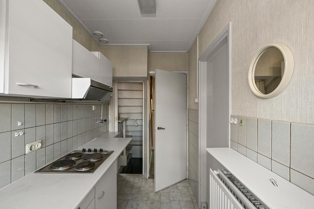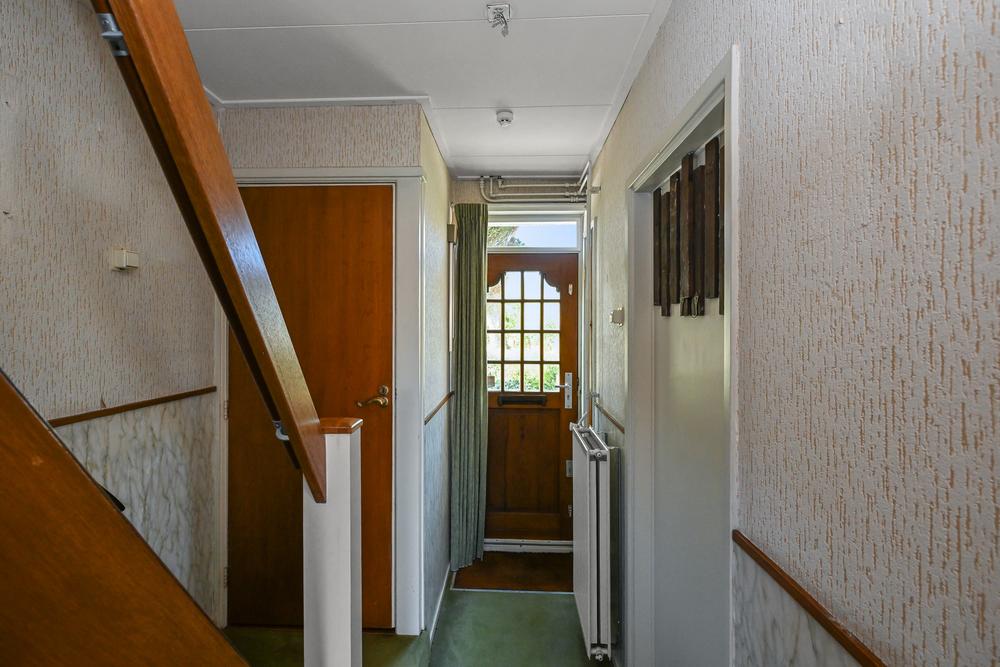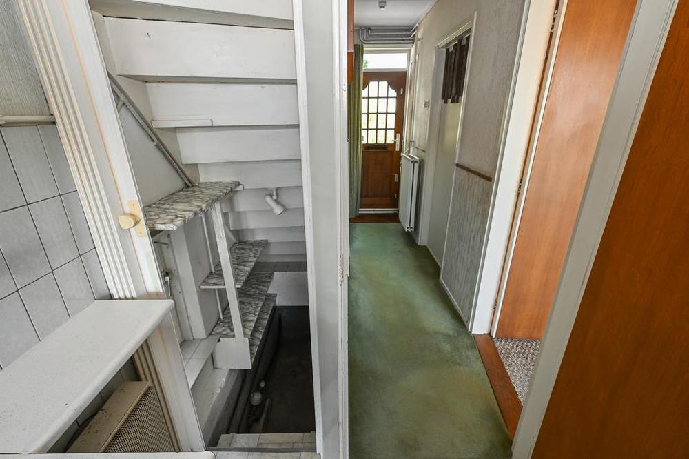 Je komt binnen via de hal, waar je direct toegang hebt tot het toilet, de meterkast en de trap naar boven. Vanuit de hal stap je de royale woonkamer binnen, grote ramen zorgen voor veel lichtinval en een fijne sfeer. Aan de achterzijde vind je de keuken met plek voor een wasmachine en voldoende kastruimte – én er is een handige trapkast voor extra voorraad.