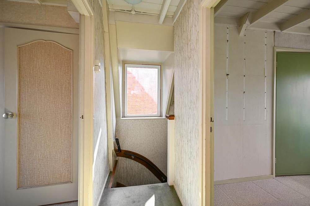 Op de eerste verdieping zijn maar liefst drie slaapkamers te vinden, allemaal van goed formaat. De grootste slaapkamer ligt aan de voorzijde en biedt alle ruimte voor een groot bed én een flinke kledingkast. De twee slaapkamers aan de achterzijde zijn eveneens prettig bemeten en kunnen dienstdoen als kinderkamer, werkkamer of hobbyruimte. In het midden van de verdieping bevindt zich de badkamer, compact maar praktisch met een wastafel en douche.