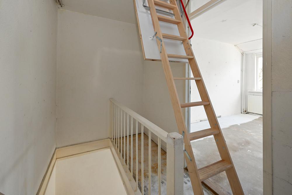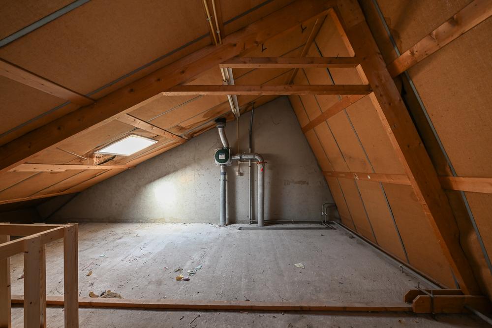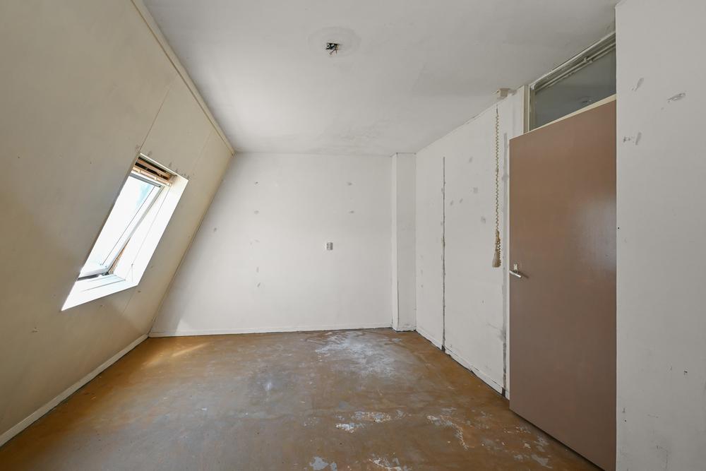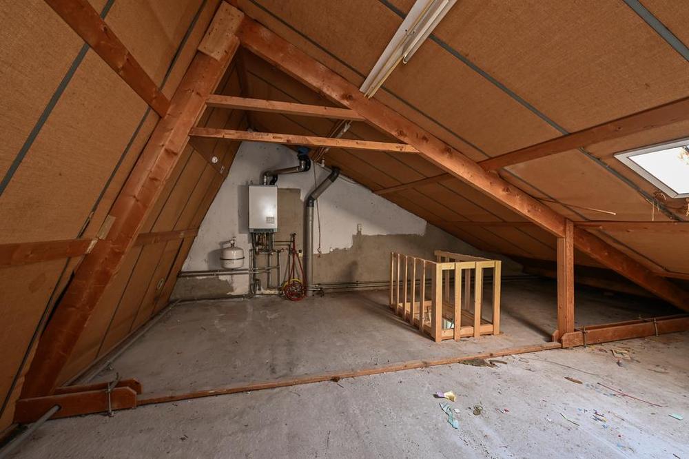 De tweede verdieping bestaat uit een royale open zolderruimte, bereikbaar via een vlizotrap. Hier bevindt zich de cv-installatie en er is meer dan genoeg bergruimte of potentie voor een extra kamer. Dankzij de breedte van het huis en het schuine dak is deze zolder een flexibele bonusruimte waar je alle kanten mee op kunt.