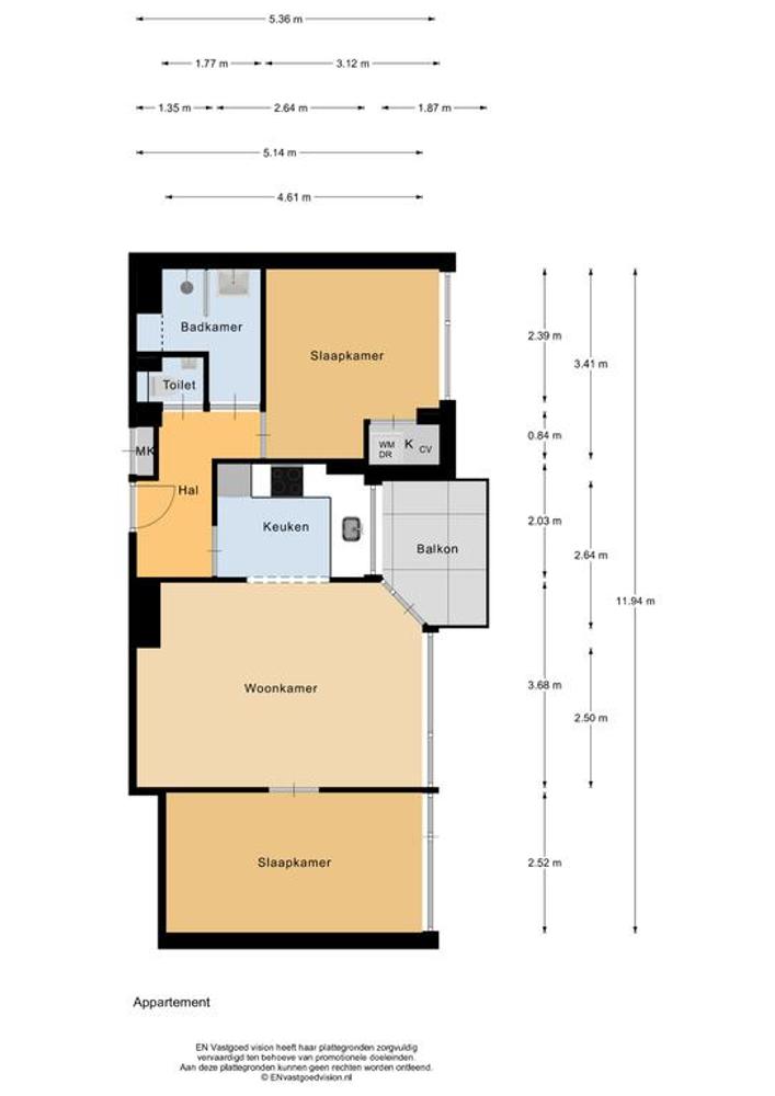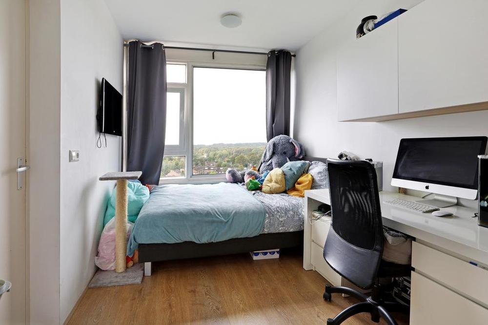 12e verdieping: je komt de woning binnen in de hal die in verbinding staat met de woonkamer, 1e slaapkamer, badkamer en separate toilet. De woonkamer heeft veel lichtinval en prachtig uitzicht. Vanuit de woonkamer heb je toegang tot de open keuken en het balkon. Het balkon ligt op het westen. Ook bereik je via de woonkamer de tweede slaapkamer.