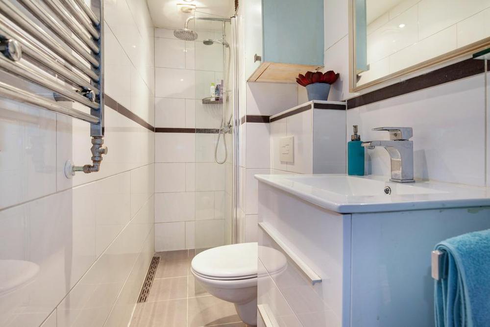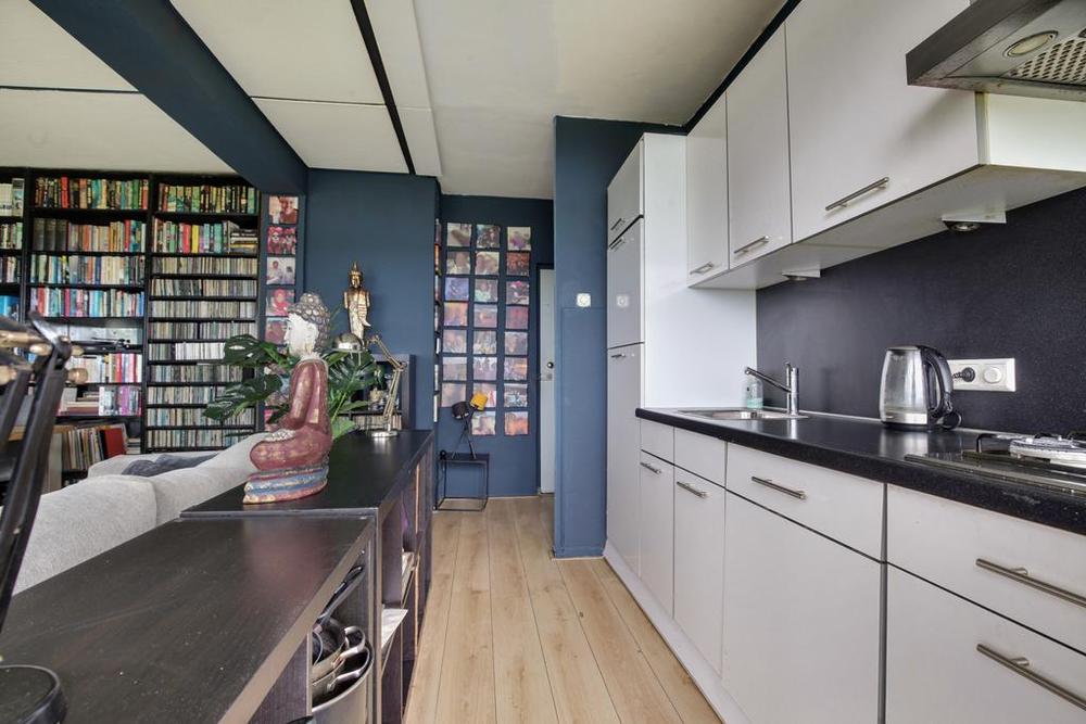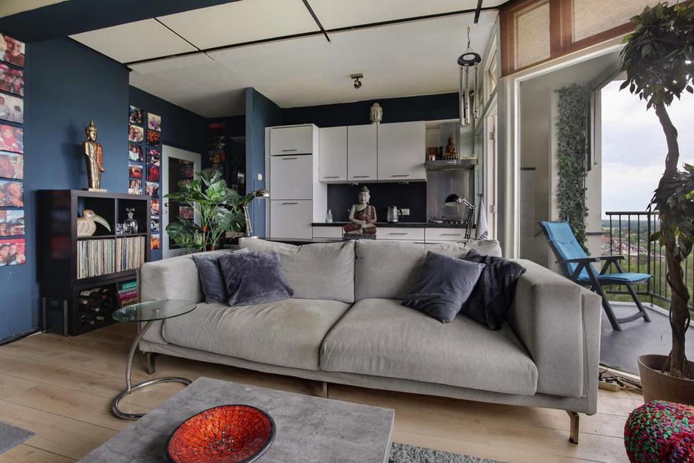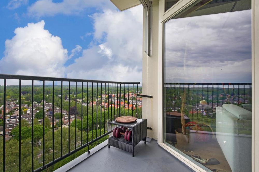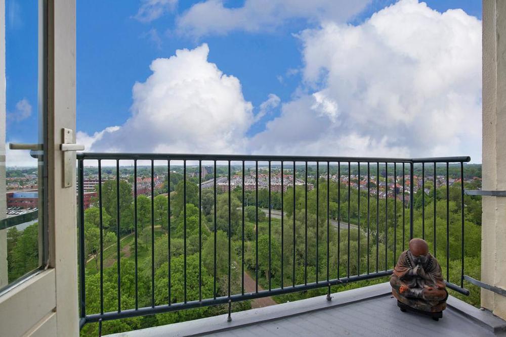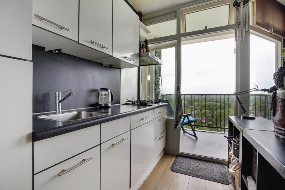 15e verdieping: je komt de woning binnen in de hal die in verbinding staat met de woon-, slaap-, en badkamer. De woonkamer heeft veel lichtinval. Vanuit de woonkamer heb je toegang tot de open keuken en het balkon. Het balkon ligt op het westen. Via de gang krijg je toegang tot de badkamer en de slaapkamer met inbouwkast. Omdat het een hoekappartement betreft heb je ook vanuit de slaapkamer toegang tot een balkon. Een tweede balkon dus! Dit balkon is gelegen op het zuiden. Aan de buitenkant van het appartement naast de voordeur bevindt zich de meterkast met ruimte voor opslag.