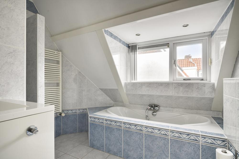 Overloop met bergruimte, twee ruime slaapkamers met dakkapellen (vernieuwd in 2013) en een complete badkamer met ligbad, aparte douche, wastafel en tweede toilet.